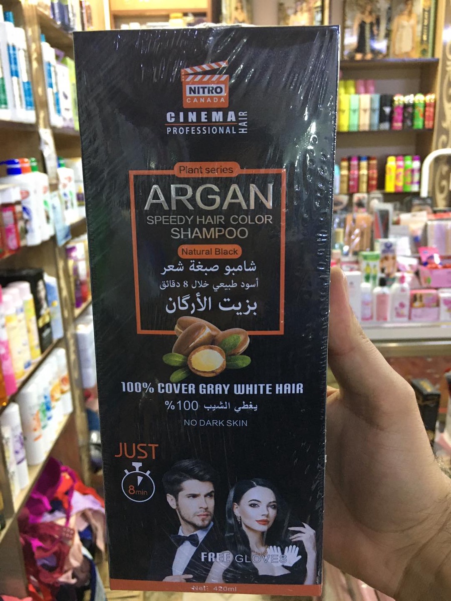 شامبو صبغ الشعر من نترو كندا بزيت الاركان يصبغ الشعر من اول غسلة يدوم طويلا ولامعا